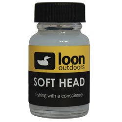 Loon Outdoors Soft Head Fly Finish - Clear Loon No mixing, water-based, non-toxic, polyurethane formula. Stays soft and pliable, yet durable. Excellent choice for building minnow bodies, and recommended as a substitute for Dave's Flexament. Dries to a workable tack in 20 minutes, cures fully in 24 hours with no fumes from noxious solvents. With applicator brush. 1 oz. bottle, available in black or clear.